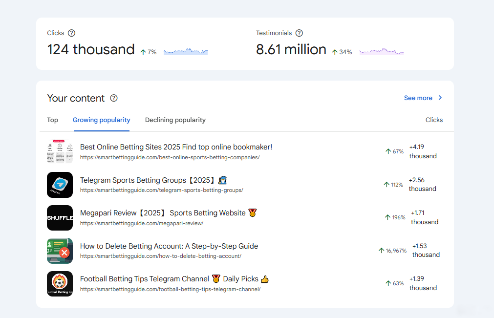 SmartBettingGuide.com began ranking for competitive terms across multiple markets. We also developed a content calendar focused on evergreen betting guides and trend-based articles that consistently drove organic traffic and positioned the site as an industry authority.